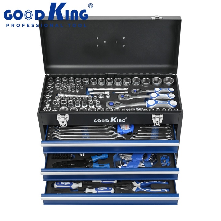 GOODKing ชุดเครื่องมือที่ทนทาน408ชิ้น, กล่องเครื่องมืออเนกประสงค์ชุดเครื่องมือประแจซ็อกเก็ตฮาร์ดแวร์14081